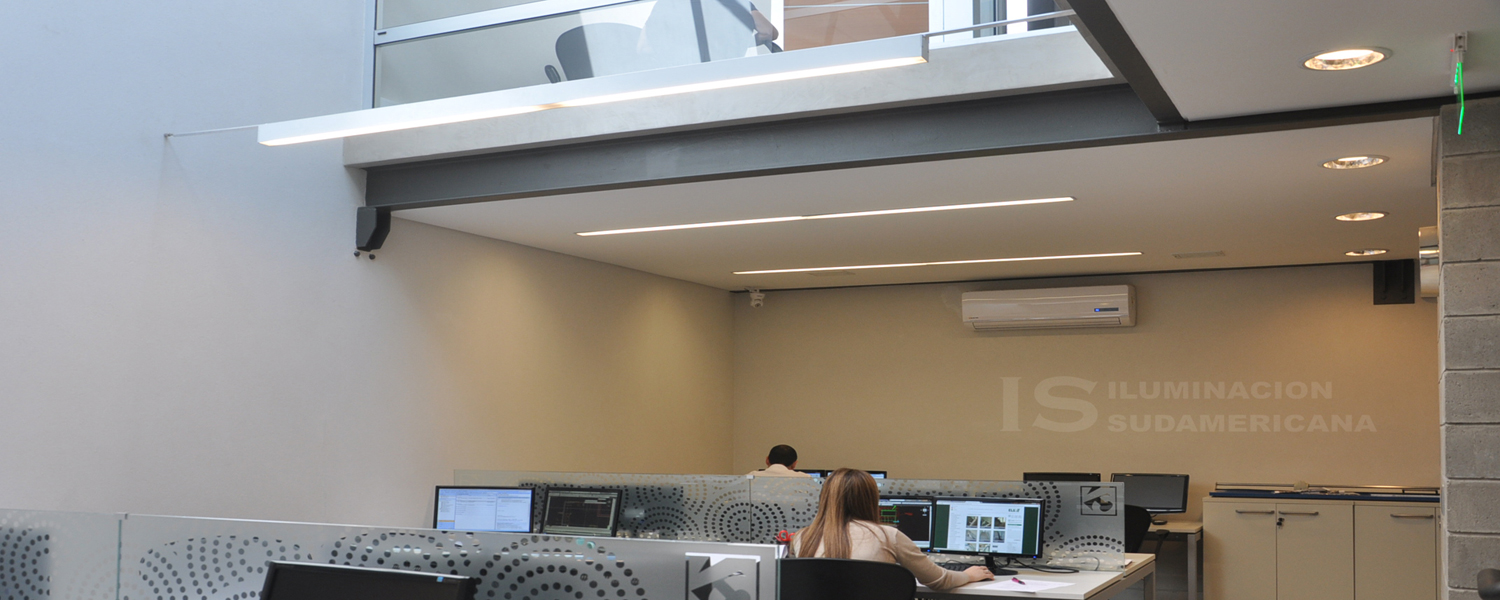 Acorde con esta premisa de diseño en las oficinas de la planta alta se trabajó con la misma línea de pensamientos de tecnología de bajo consumo reforzada por artefactos con louver que ayudan al anti-deslumbramiento.